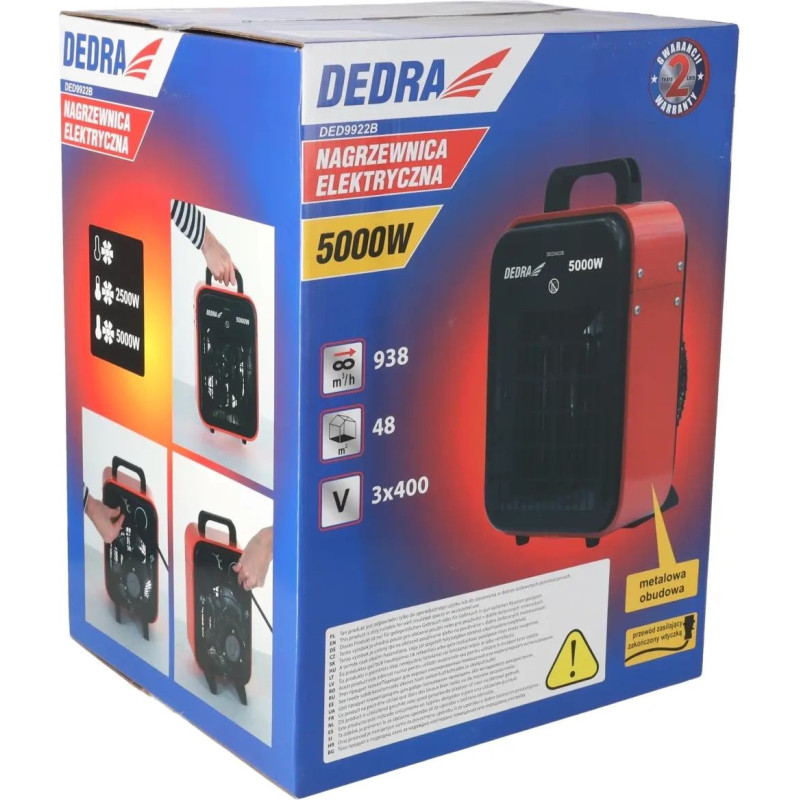 Dedra-Exim Elektriskais silditajs 2,5/5,0 kW, 400 V, termostats, gaisa pušana 730 m3/h, ventilatora funkcija