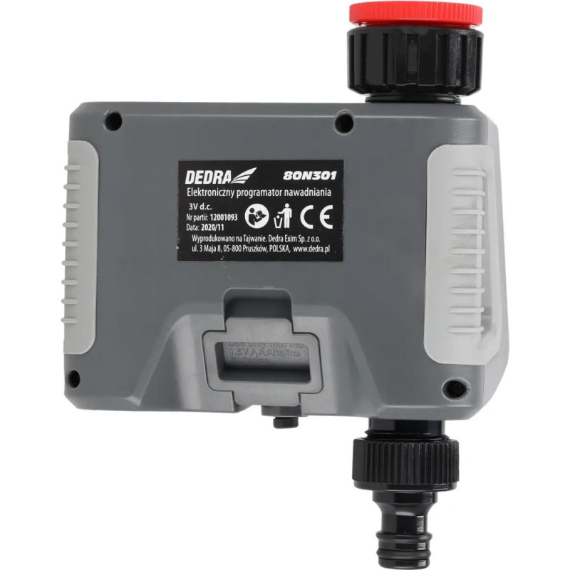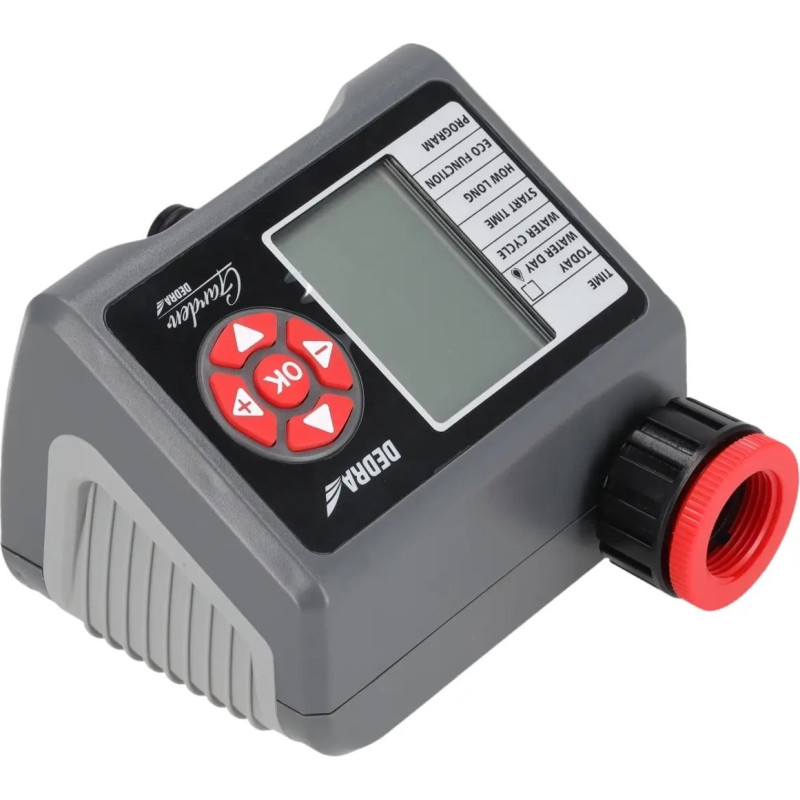Izgatavots no izturīgas plastmasas, 4 laistīšanas programmas, laistīšanas laiks no 1 līdz 240 min, laistīšanas dienas izvēle, slīps šķidro kristālu displejs ērtai lietošanai, ekoloģiskais režīms darbībai ar pārtraukumiem un ūdens taupīšanai, laistīšanas atlikšana līdz 6 dienām, darbojas ar akumulatoru (2xAA).