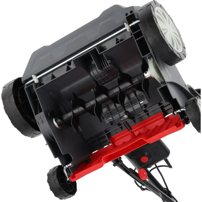 Jauda 1500W, Darba platums 32cm, Komplektā iekļauts veltnis vertikulācijai un aerācijai, 4 darba dziļuma iestatījumi (-12~+4), Centrālā dziļuma regulēšana, Groza tilpums 30l, Riteņu diametrs 10/18cm