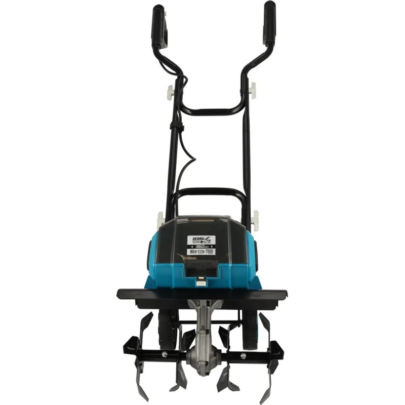 Ātrums: 180 apgr./min; darba platums: 360 mm; darba dziļums: 220 mm; asmeņu diametrs: 200 mm; 4 rūdīti asmeņi uz rotējošas 4x4 vārpstas; bezass motors.