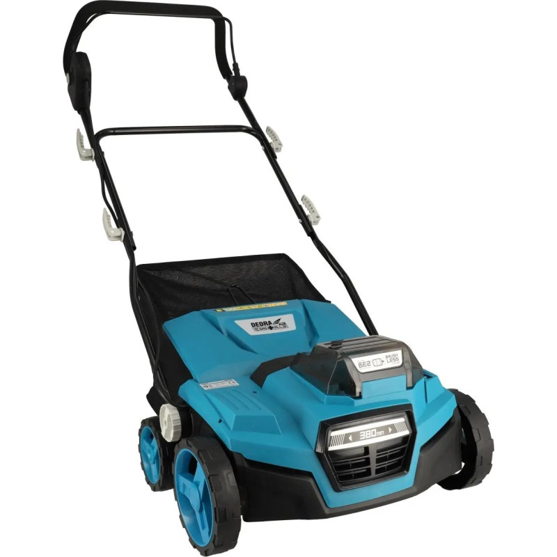 Ātrums: Darba platums: 380 mm; dziļums reģ: -12/-9/-6/-3/ 6mm; tvertnes tilpums:45l; funkcijas: aerācija un skarifikācija; bezsuku motors.