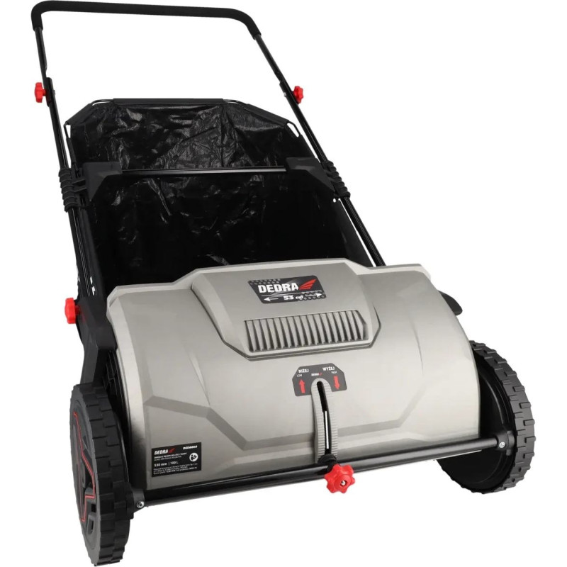 Darba platums: 530 mm; riteņu diametrs: 25 cm; tvertnes ietilpība: 100 L; 8 birstes lapu, zāles un sīku zaru savākšanai; centrālā augstuma regulēšana; ērts rokturis; iebūvēta atkritumu tvertne.