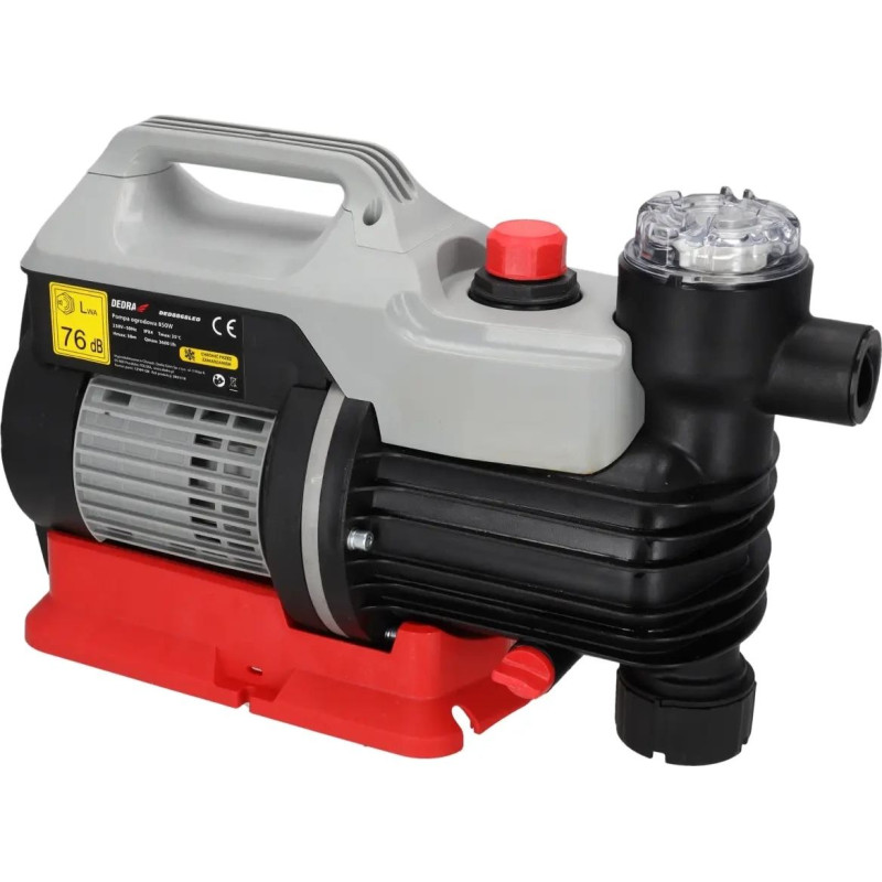 Ierīces jauda: 850 W, Pārnēsāšanas rokturis, Automātiska ieslēgšanās, automātiska izslēgšanās, Barošanas kabeļa garums: 1,2 m, plūsmas ātrums: 3600 l/h, Konstrukcijas materiāls: alumīnijs, plastmasa, Maksimālais sūkšanas dziļums: 8, maksimālais pacelšanas augstums: 38 m, savienojuma diametrs 1", IPX4, aizsardzība pret sausu darbību