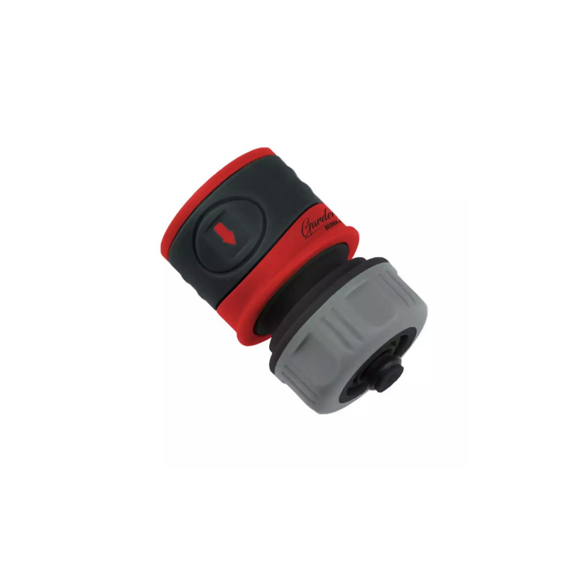 Ar DEDRA 80N122 dārza šļūtenes ātru savienotāju mēs varam ātri unci eš i savienot 3/4" dārza šļūteni ar apūdeņošanas sistēmu bez instrumentiem vai šļūtenes skavām. Nospiežot kloķi, tiek panākts drošs un ciešs savienojums bez spailēm vais k avām . Ātrās noņemšanas savienojums ir izgatavots no izturīgas ABS un PP plastmasas, kas nodrošina ilgu kalpošanas laiku. Turklāt ātrās atbrīvošanas sakabe ir izklāta ar mīkstu T PR materiālu, kas uzlabo komfortu un saķeri pat slapjā laikā. Iekšējais vārsts pārtrauc ūdens padevi, kad pieslēgtaiselements, piemēram,pistole vai smidzinātājs, ir atvienots